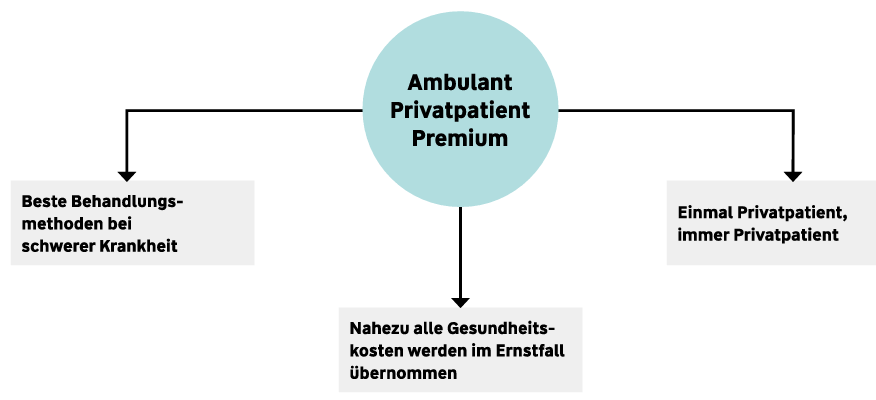 Wenn eine schwere Krankheit plötzlich Realität wird, steht besonders der Wunsch nach der bestmöglichen Behandlung im Mittelpunkt. Und das natürlich umgehend. Mit der ambulanten Krankenzusatzversicherung machen Sie sich im Ernstfall in der ambulanten Versorgung zur Privatpatientin bzw. - Privatpatient. Auch ohne das Eintreten einer schweren Krankheit können grundsätzlich Vorsorgeleistungen in Anspruch genommen werden – ganz ohne Alters- und Diagnosebeschränkungen und zeitliche Einschränkungen. Somit können schwere Krankheiten bereits frühzeitig erkannt und die bestmöglichen Therapien umgehend zur Behandlung eingesetzt werden.